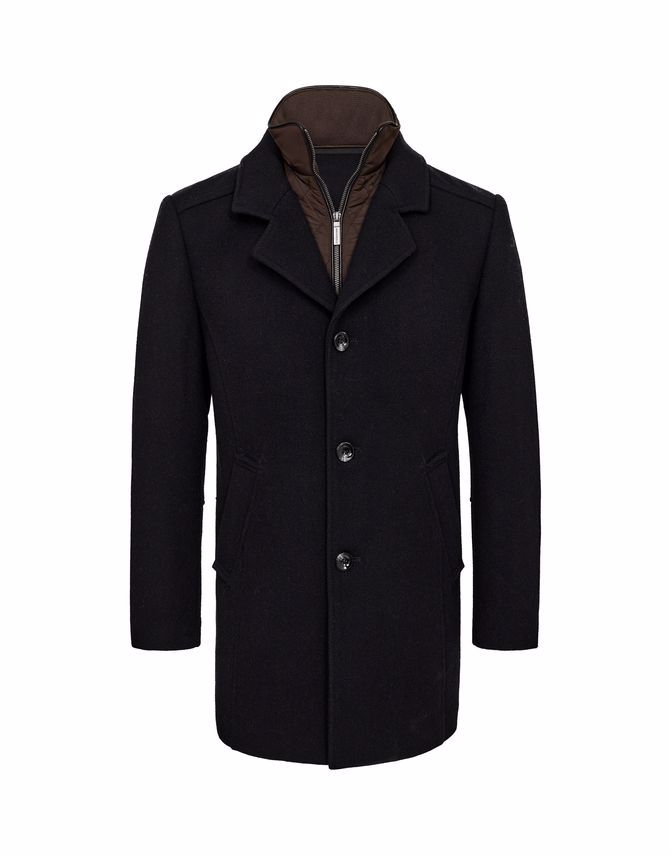 Gino Marcello- Mens wool coat modern fit - Klassisk uldfrakke fra Gino Marcello med et stilrent design. Den kan lynes helt op i halsen for ekstra varme og lukkes med tre knapper foran. Frakken har sidelommer og et tidløst snit, der bliver en favorit i mange år - Modern fit - Materialer: 50% wool 50% other. 10152910_-_1061046 // 1500003 Farve Navy // 500_NAVY
