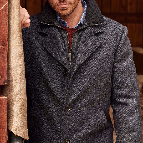 Gino Marcello- Mens wool coat modern fit - Klassisk uldfrakke fra Gino Marcello med et stilrent design. Den kan lynes helt op i halsen for ekstra varme og lukkes med tre knapper foran. Frakken har sidelommer og et tidløst snit, der bliver en favorit i mange år - Modern fit -